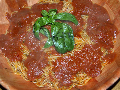 Canned tomatoes or Fresh tomatoes in the summer, Olive Oil….Garlic…Fresh Basil… Salt & Pepper and a pinch of crushed red pepper flakes for a little zing-ahhh…no oregano…no onion…no sprinkled cheeses…no nothing.