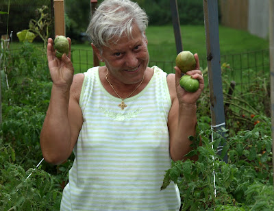 In 2010 I wrote about Cheryl’s on River Road in Calverton and her fabulous cherry tomatoes …in 2011 I wrote about Joanne Zelnicki on Sound Avenue and her brilliant “Champion” tomatoes. For 2012, even though I want her all for myself, I have to share with all of you Flora The Santorini Tomato Maven.