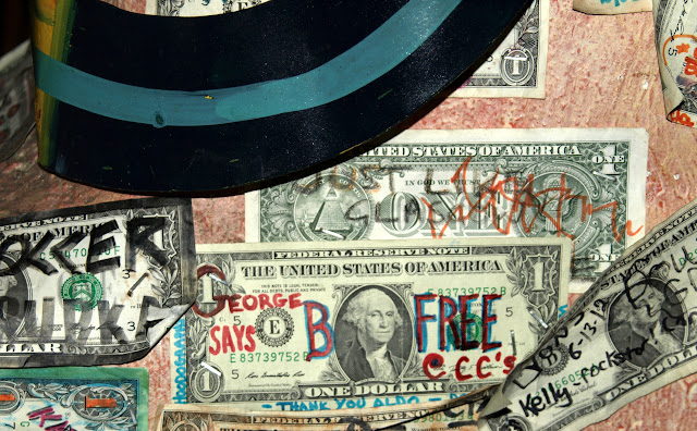 One more thing and something you surely don’t see every day is an interior festooned with dollar bills made into art by all who eat there. They give you colored markers to create your own dollar bill work of art and a stapler to find a place to post your artwork. When you leave, you know you have left your mark and will be back again for the fun of it all and the great food.