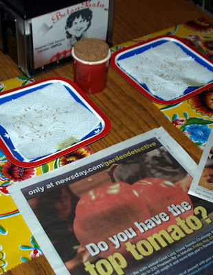 Squeeze approximately 30-40 seeds from any tomato that you LOVE…place in a cup with two tablespoons of water…cover with plastic wrap and punch a hole in the top. Stir daily for 3 days. After that time, the seeds will have separated from the gelatinous goop that surrounded it as it came out of the tomato.