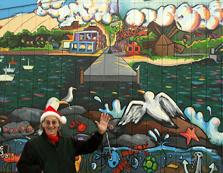 As we were leaving, I decided to take a pic of the mural on the side of the wall of Bay Burger and a fellow walking around outside with a Santa hat pointed out the mural was painted by Molly Weiss, a local artist (see pic). He introduced himself as none other than John Landes, the owner of the Bay Burger. That cemented everything. It was meant to be that we would have to come home to the Bay Burger when they open again in season.